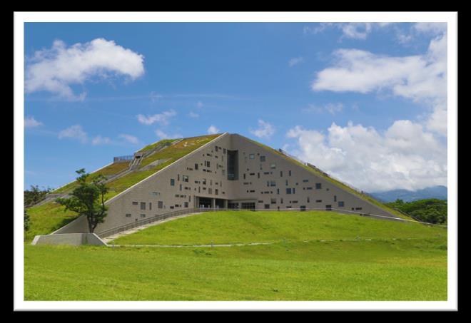 一走進臺東大學的校園,就能看見一座高大的、綠色的金字 塔。這座金字塔就是臺東大學著名的地標──圖書館。 圖書館在一片綠油油的草地上,旁邊有著美麗的鏡心湖。因為 屋頂也種了草皮,圖書館看起來就像一座綠色的金字塔,遠看還像 是一本翻開來的書。因為特別的外型,圖書館被選為「世界 8 大特 色圖書館建築」之一,許多遊客來到臺東大學就是為了看一眼美麗 的圖書館。