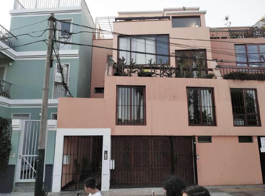 Se encuentran como máximo viviendas de 4 pisos. La fachada cuenta con marcos de madera en las ventanas una de las características que poseen las casas de barranco.