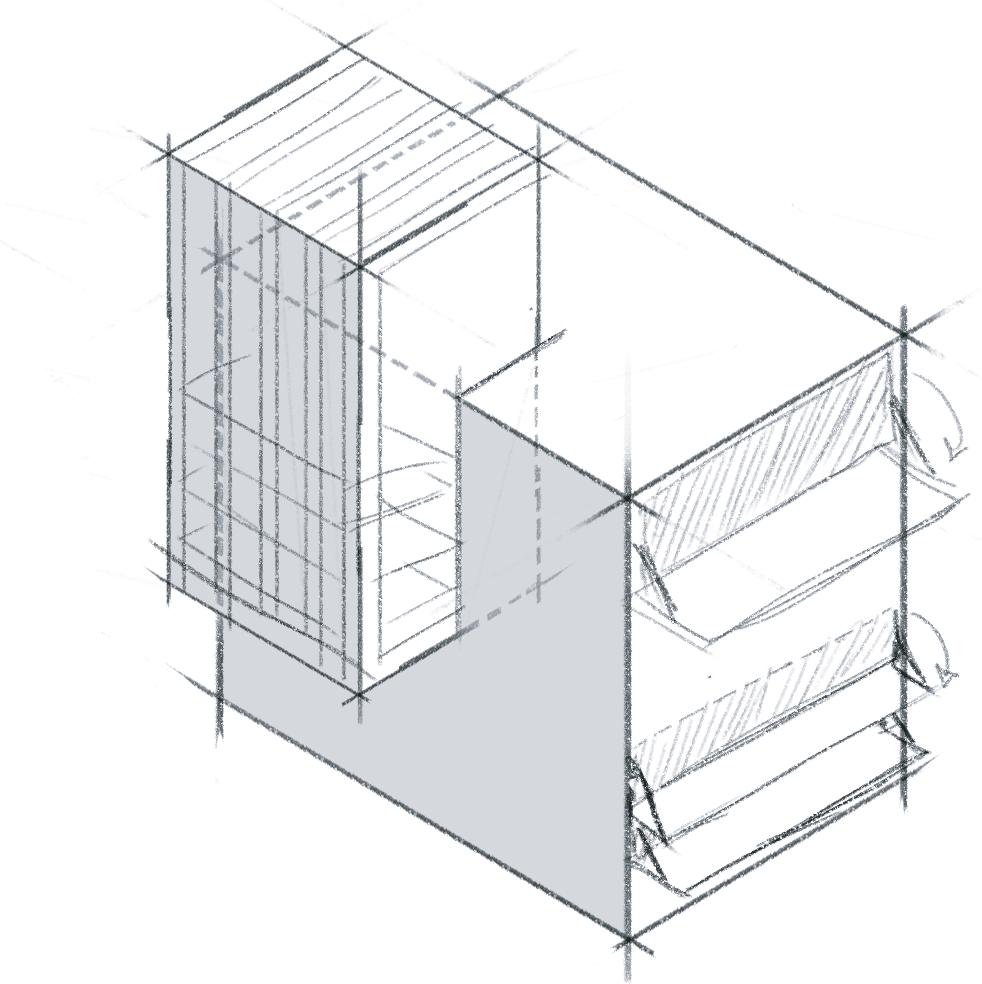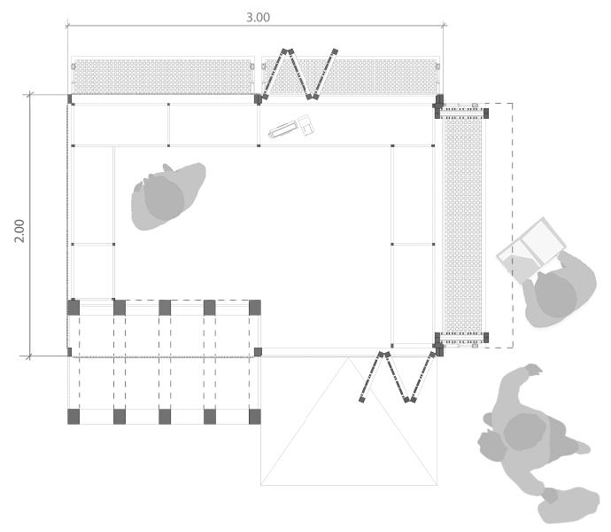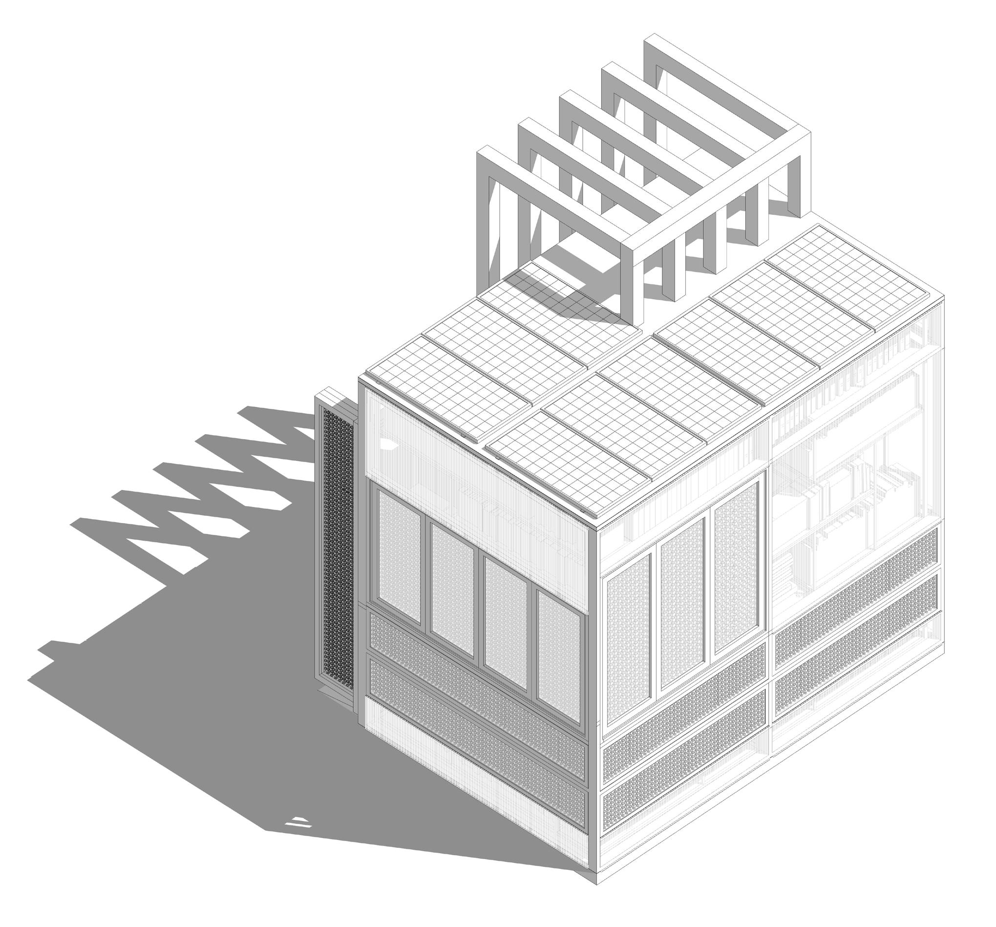 The clinic volumes are segregated to reflectthe privacy of each function and patient, while their inclined design and open tops serve to enhance ventilation and shield occupants from direct sunlight. The height of the perforated sections of the walls is determined by the level of privacy required for each specific function within. This customization approach ensures a harmonious balance between patient privacy and comfort.
