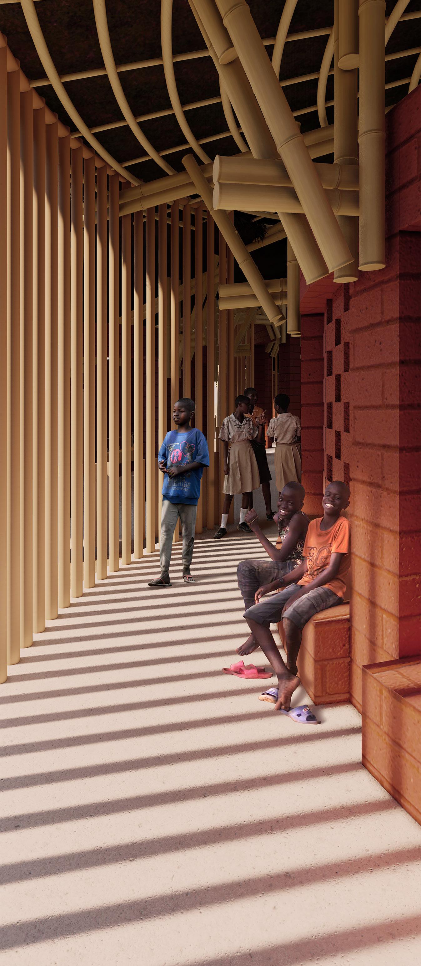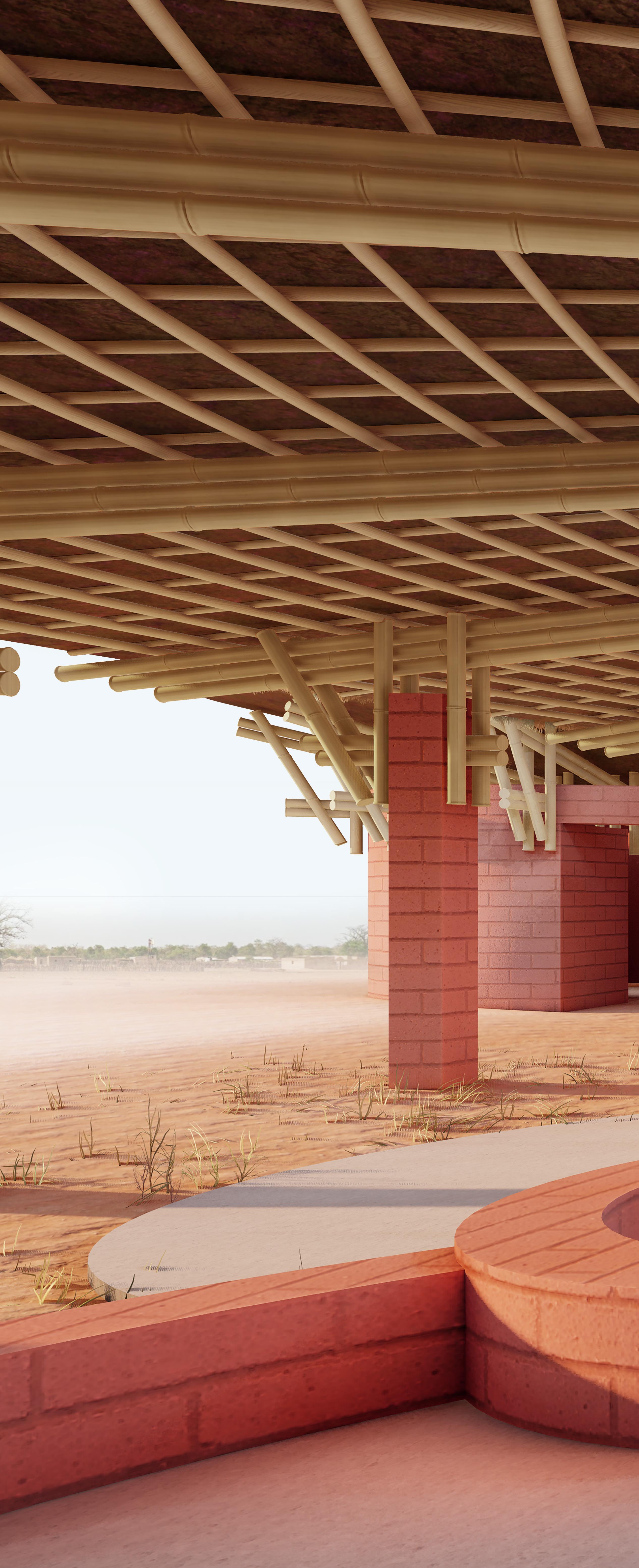 The grid layout, resemble of the village “conssion,” is structured to serve multiple functions.The initial tier comprises nine enclosed circles, including six classrooms adhering to Senegal’s education system, along with a larger circle designated for administrative offices and a shaded communal area. An additional circle serves as the entrance .In the subsequent row, two circles are allocated for toilet facilities, mirroring the layout of private spaces within a typical “conssion.”