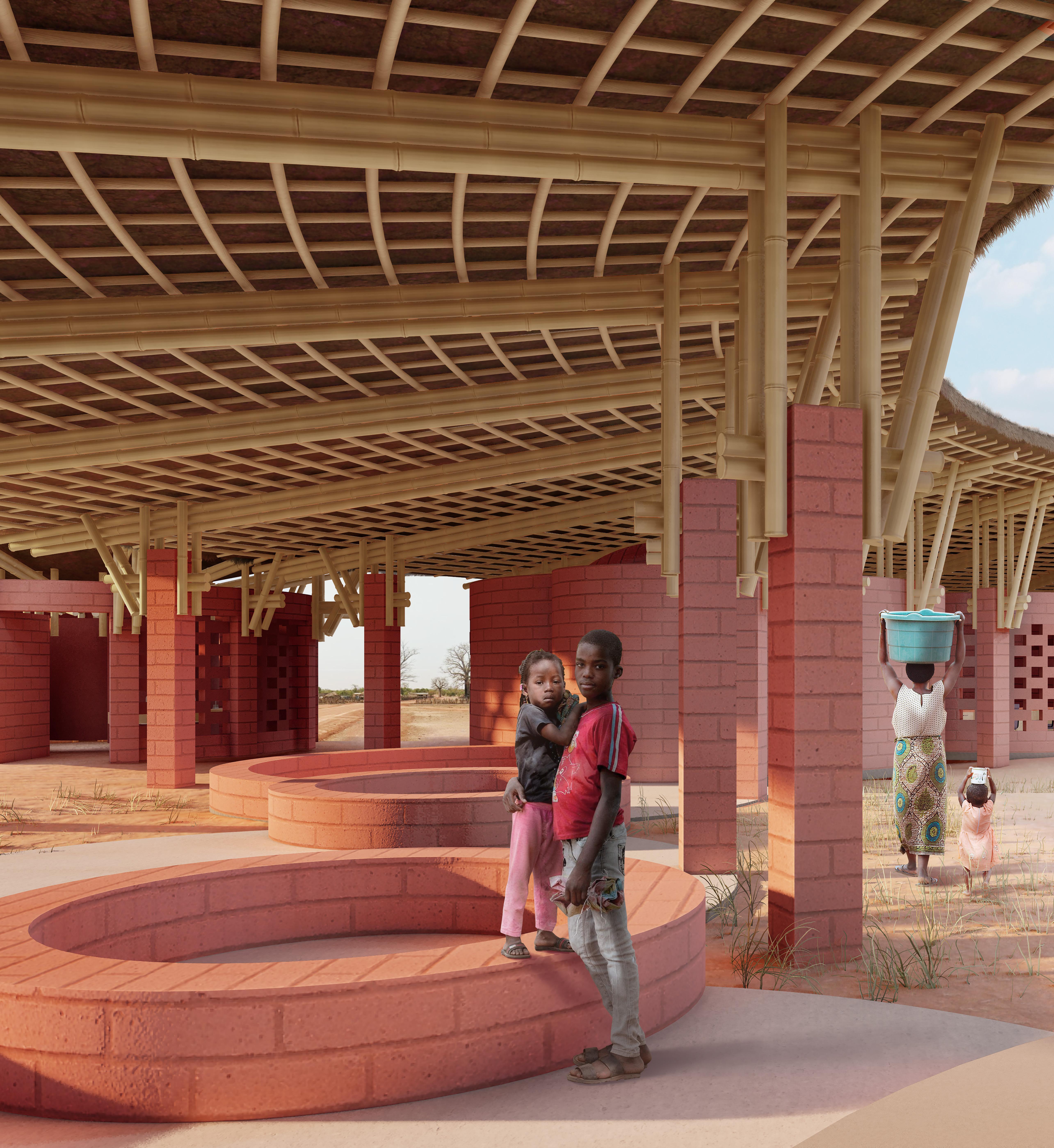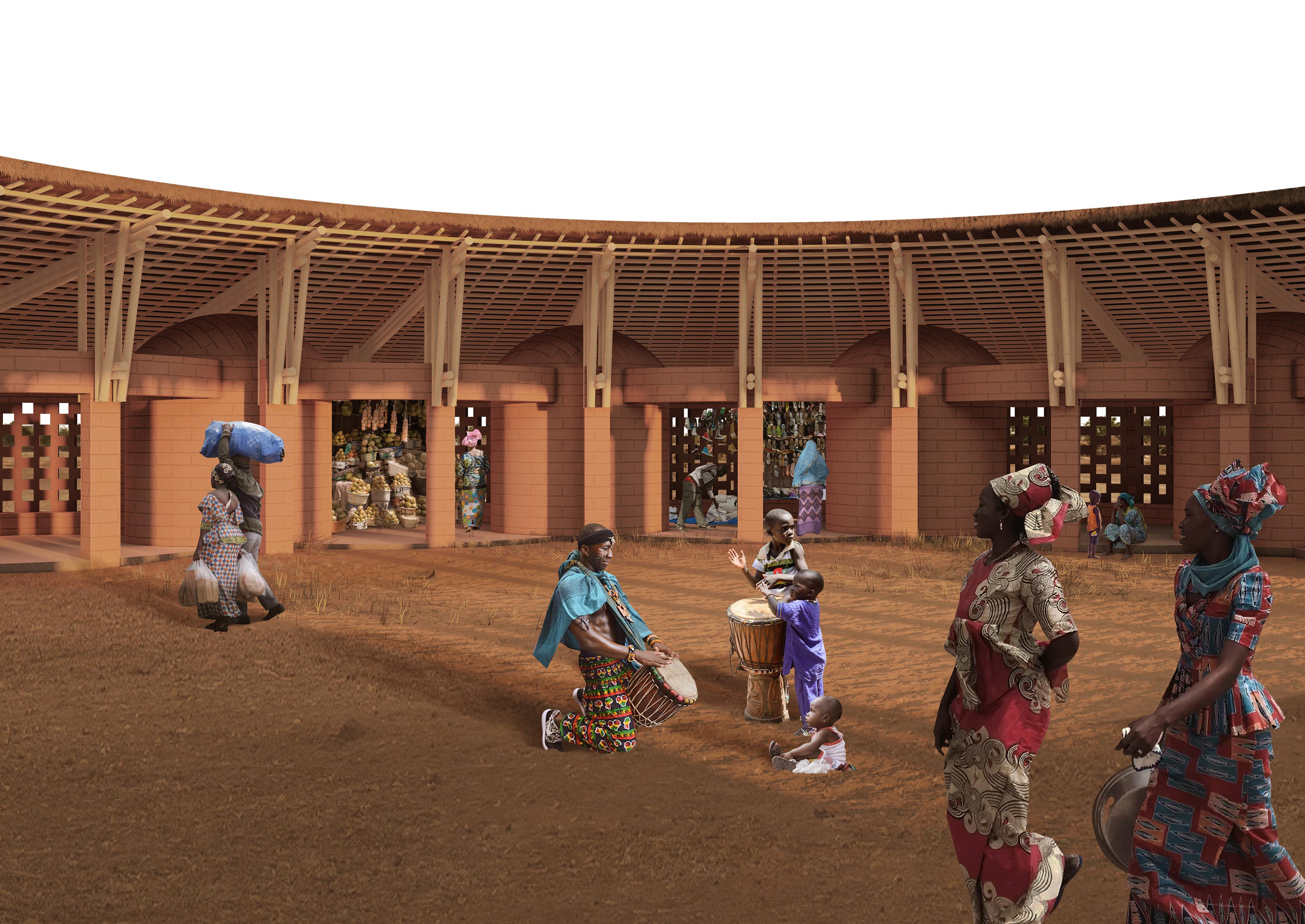 The market volumes are structured with open interiors, intersecting smaller storage spaces, and ending with a kitchen and seating areas to eat and socialize. Positioned opposite are facilities dedicated to community engagement, including workshops, offices, and an assembly hall, providing a platform for village members to convene and address communal matters. Meanwhile, the central courtyard maintains a generous and unobstructed layout, serving as a versatile space for hosting celebrations and communal, as well as prayer gatherings.