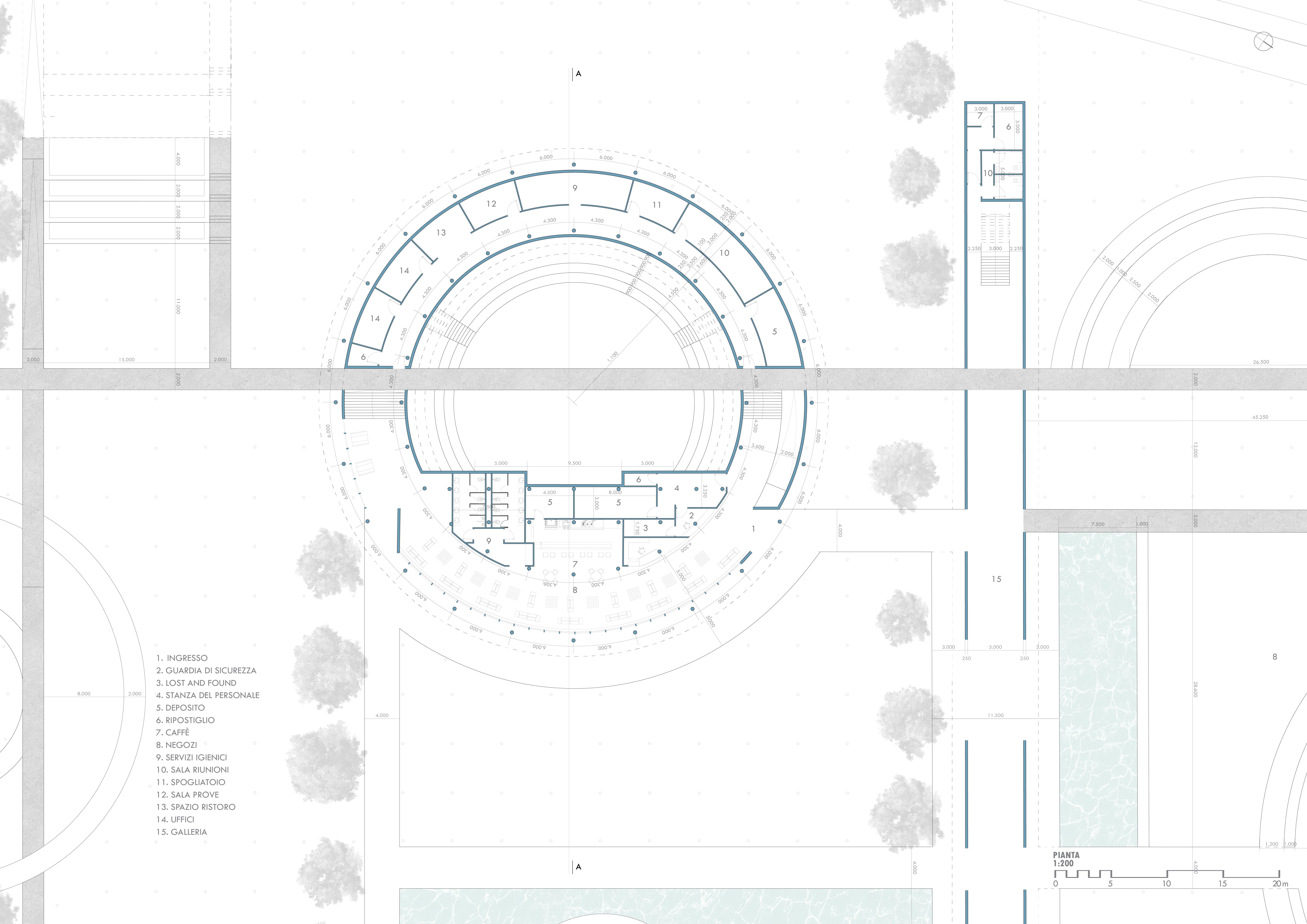 The clinic grid comprises nine circles, each tailored to accommodate specific functions, with their sizes reflecting their importance. Two larger circles are designated for the administrative offices and overnight stays, providing beds for patients traveling from afar. The next three circles in size cater to emergency services, pharmacy, and examination rooms, with additional seating areas created by brick arrangements for patient waiting. Lastly, two smaller circles on the second tier accommodate toilet facilities, ensuring convenience and accessibility for visitors.
