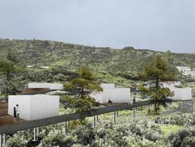 Teniendo en cuenta la erupción del volcán Cumbre Vieja, la propuesta del complejo se acompaña necesariamente de una infraestructura paisajística. Dicho esto, el proyecto parte de una plataforma que abarca todo el sitio. Esta plataforma actúa como el eje estructural del proyecto, desde el cual emergen los distintos programas, regidos por un módulo mínimo correspondiente a la residencia, y extendiéndose hacia los programas de divulgación y laboratorios, que ocupan una mayor superficie. De este modo, el recorrido se convierte en el elemento principal del diseño.