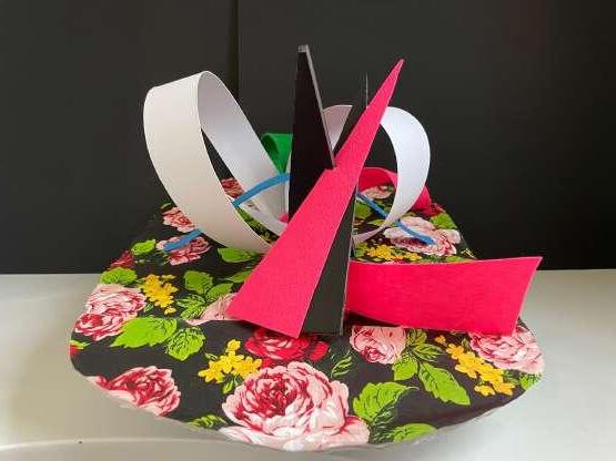 -Using Different Colored Papers, shapes were cut out in order to compose a structure. -Various Colored papers were used to create the body and curves using a box cutter for the shaping.
