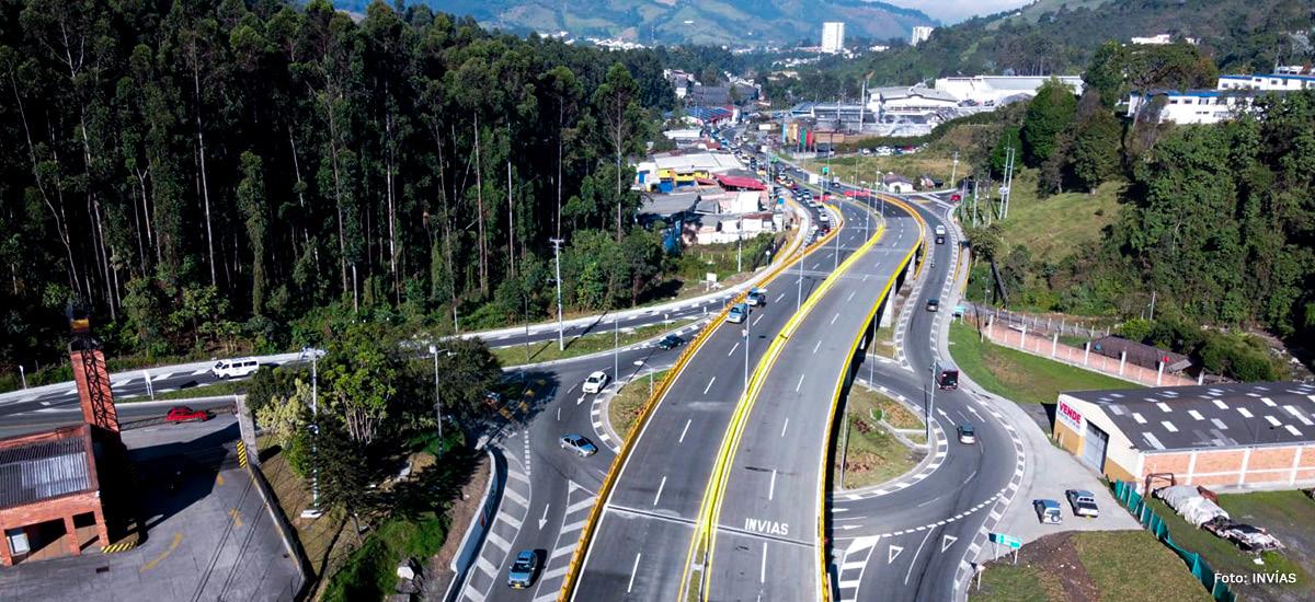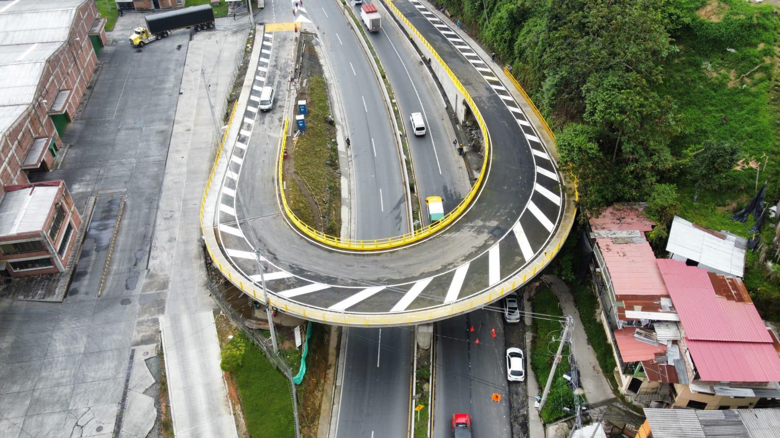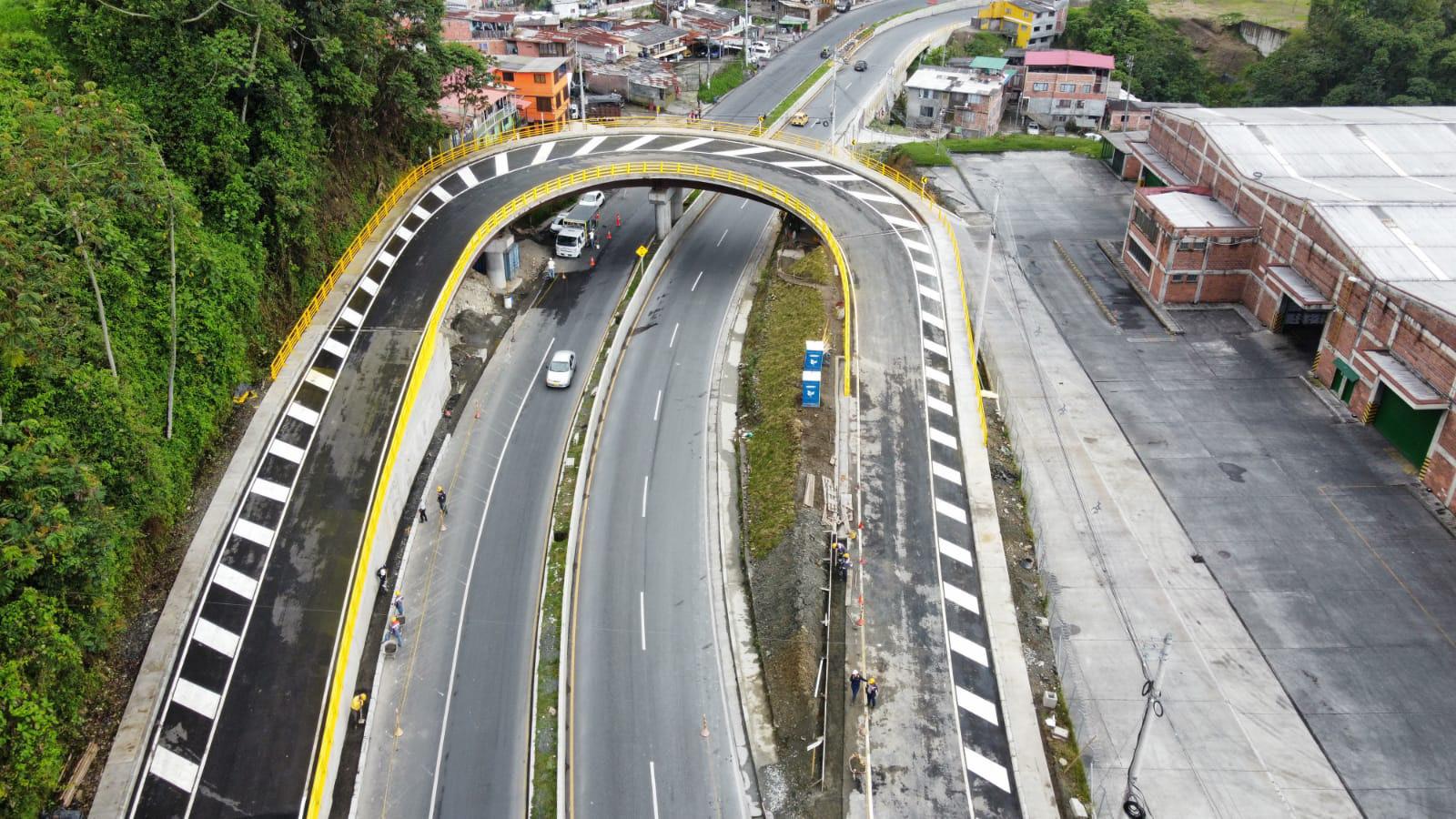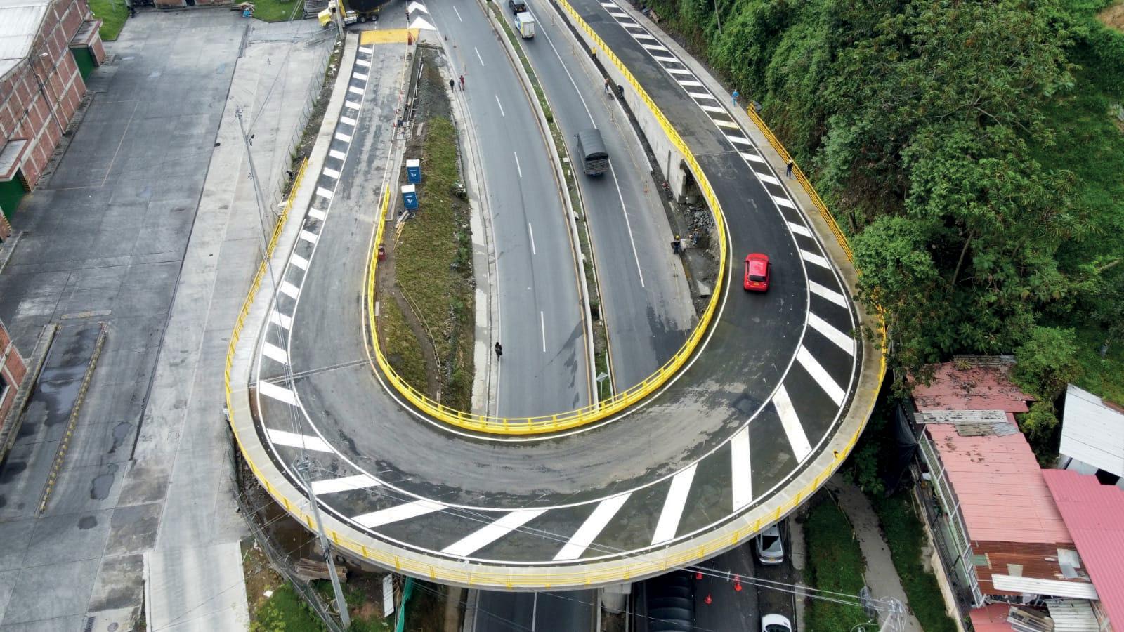 Dos puentes curvos en concreto postensado que conforman una glorieta con aproximaciones en tierra mecánicamente estabiliza da, el proyecto hace parte de un rediseño de la subestructura y del tensionamiento en la superestructura al cual le faltaba detalla miento y presentaba problemas en los esfuerzos principales.