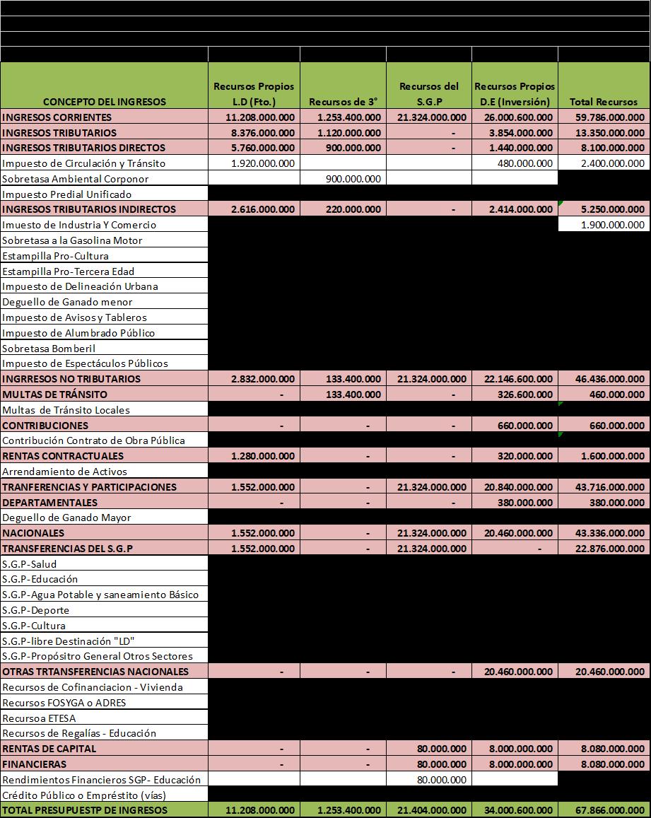 CÓDIGO RUBRO DESCRIPCIÓN VALOR 2.1.1.001.01.02 ESCUELAS DE FORMACIÓN DEPORTIVA 259.200.000