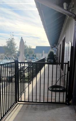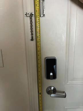 5. Maneuvering clearances at doors with a pull side, front approach shall be a minimum 18 inches. BAI observed a gated entrance along an accessible path with non-compliant maneuvering clearances.