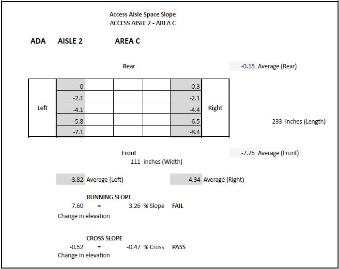 Cross Slope: 2.59 % (FAIL)