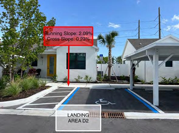 1. Accessible parking spaces shall have a slope no greater than1:48 in all directions. BAI observed accessible parking spaces with slopes greater than themaximum allowable 1:48.