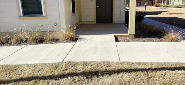 • Ownership shall provide walking surfaces/Sidewalks along accessible parking spaces with compliant slopes to facilitate entry to units.