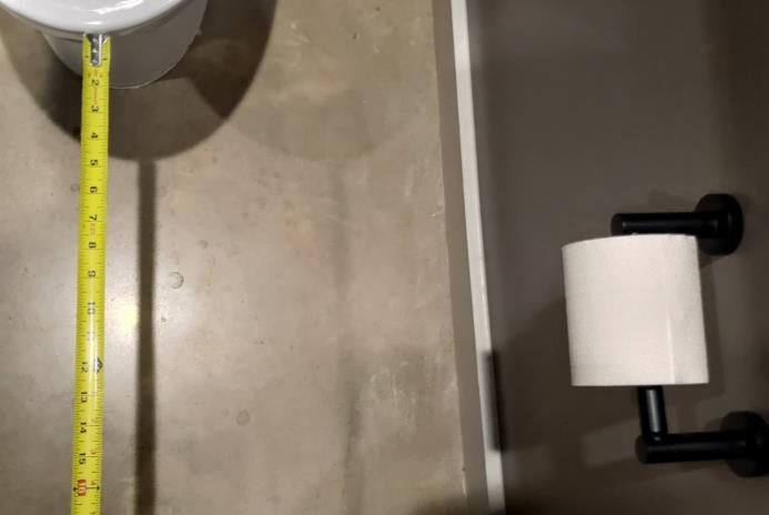 • Ownership shall provide toilet paper dispenser outlets mounted within a range of 7 and 9 inches from the water closet.