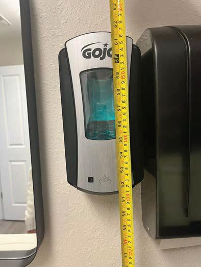 11. Reach ranges shall fall within 15 and 48 inches. BAI observed paper towel/toilet seat covers within common areas mounted greater than the maximum allowable 48 inches.