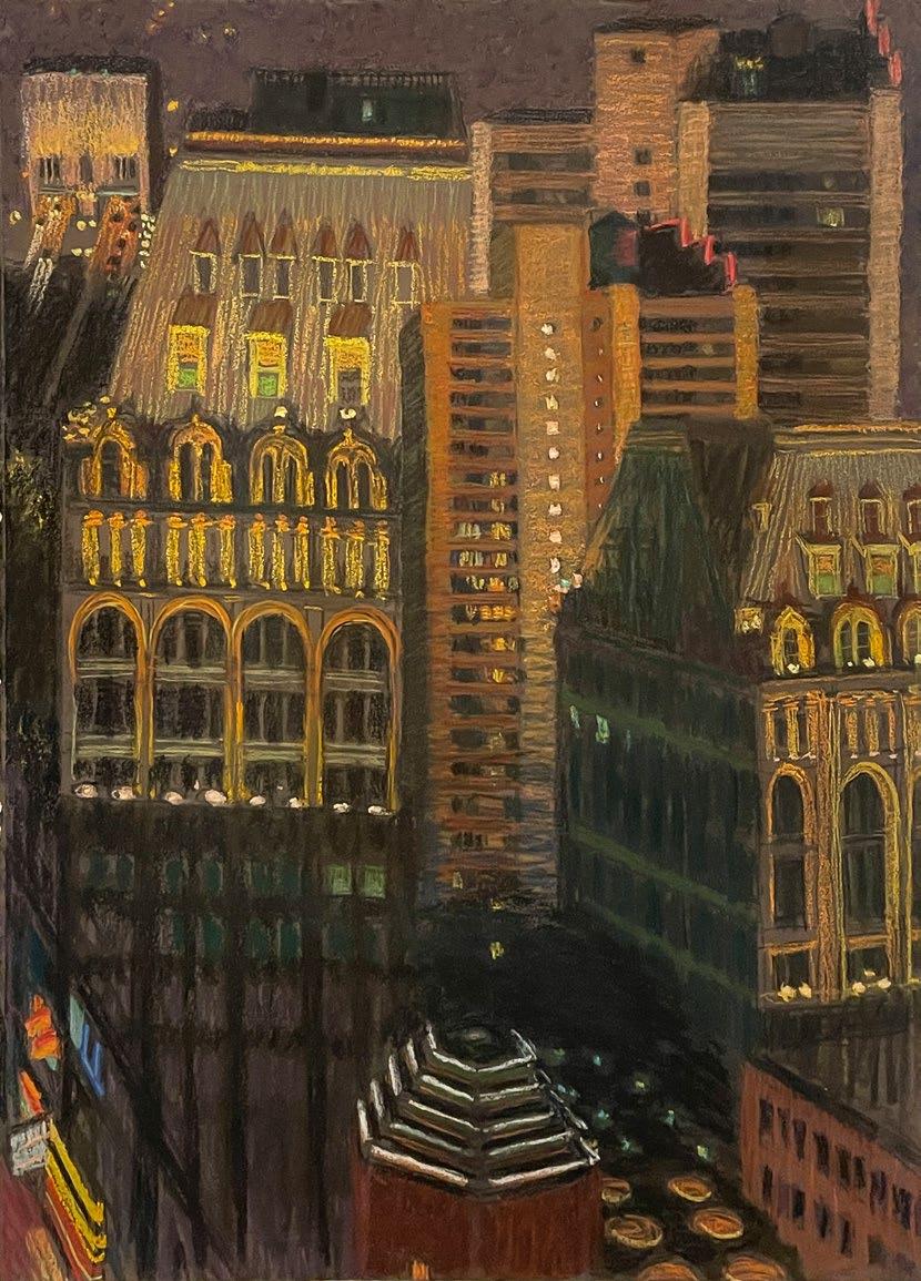 There were, of course, other places that served as inspiration. In the 1930s, Surrealist Juanita Guccione opted to live among the Ouled Naïl people in eastern Algeria, a wandering matriarchal tribe.3 Here, she was able to observe and participate in a social system steered by women, which undoubtedly influenced the mysterious and capable feminine figures in her paintings. Before settling in Paris, Hicks, a fiber artist, traveled throughout South America, documenting the different cultures and indigenous customs she encountered. She later lived in Guerrero, Mexico, from 1959 to 1964, learning from traditional craftspeople who created their own clothing by hand and working with local materials like wool from Oaxaca or cotton from Tenancingo.4 Vivian Springford’s travels to Guatemala, the Himalayas, Tanzania, and the Caribbean helped her to formulate the essence of a landscape within her abstract canvases. Further, painter of aerial views Yvonne Jacquette adapted her practice to incorporate multiple perspectives in her top-down imagery after flying over Hong Kong in 1990.
