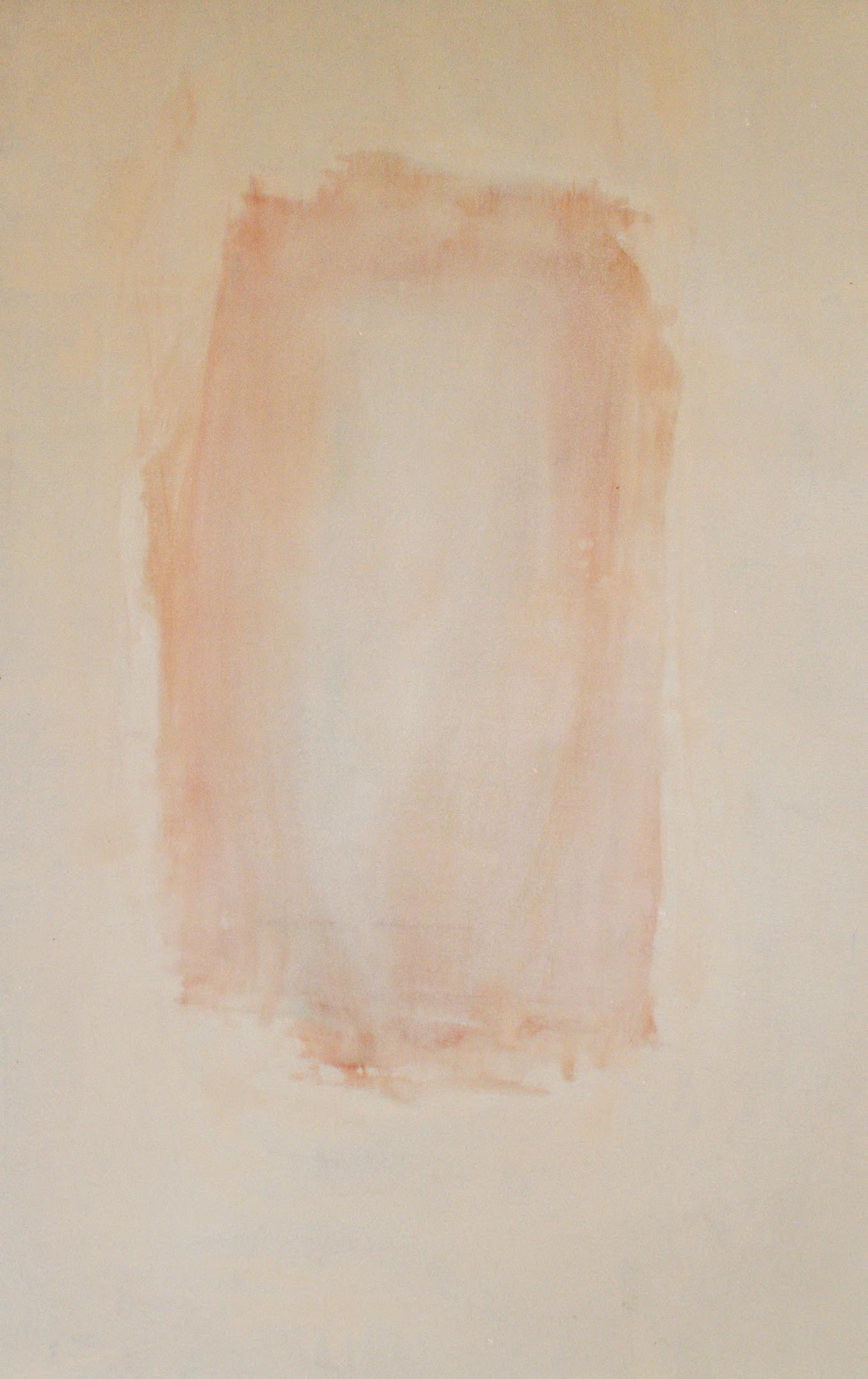single canny formal device.” He stated: “all her canvases are tall, vertical rectangles. What this shape achieves is a physical presence that supports the paintings’ fragile play of color and texture,” confronting “the viewer with a satisfying firmness, inviting delectation.” Schjeldahl observed that each painting floated a “warm, soft color” within “a somewhat less-intensely colored field” and that the amorphous internal shapes were “closely related by hue to the surrounding fields.” Commenting that the canvases were “alive with a variety of evanescent hues and tints,” he stated: “The goal of her art is to be at once as gorgeous and as delicate as possible; she intends to ravish.”4