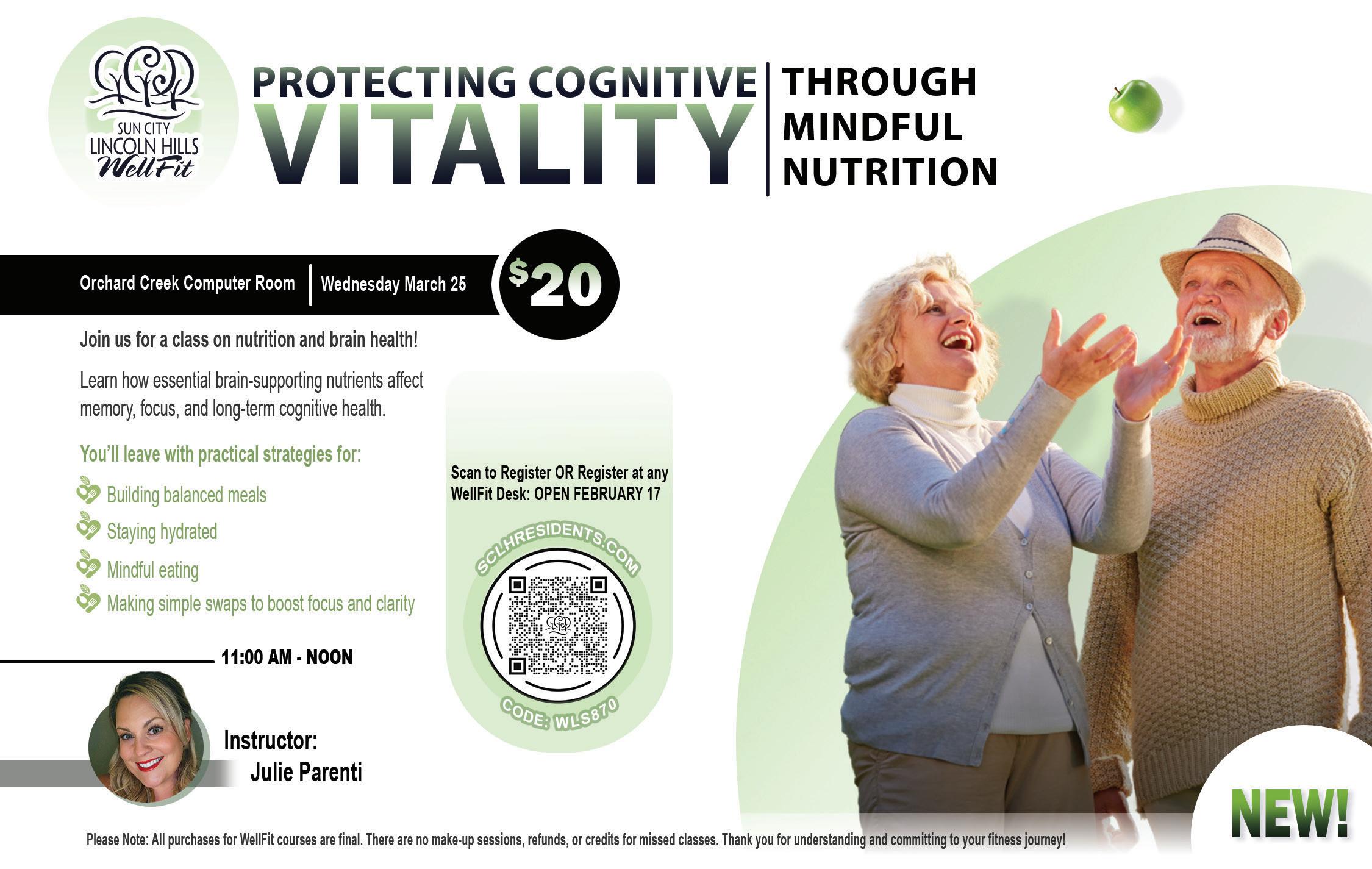 March is Nutrition and Recovery Month.Make sure to check out our new class, Protecting Cognitive Vitality Through Mindful Nutrition. See ad below for more information.