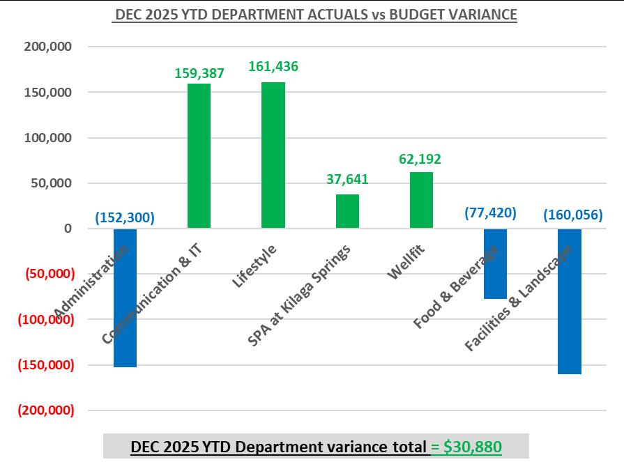 The only departments having significant (more than $10,000) differences from November were Administration, Food and Beverage, and Facilities and Landscaping. Comments this month are limited