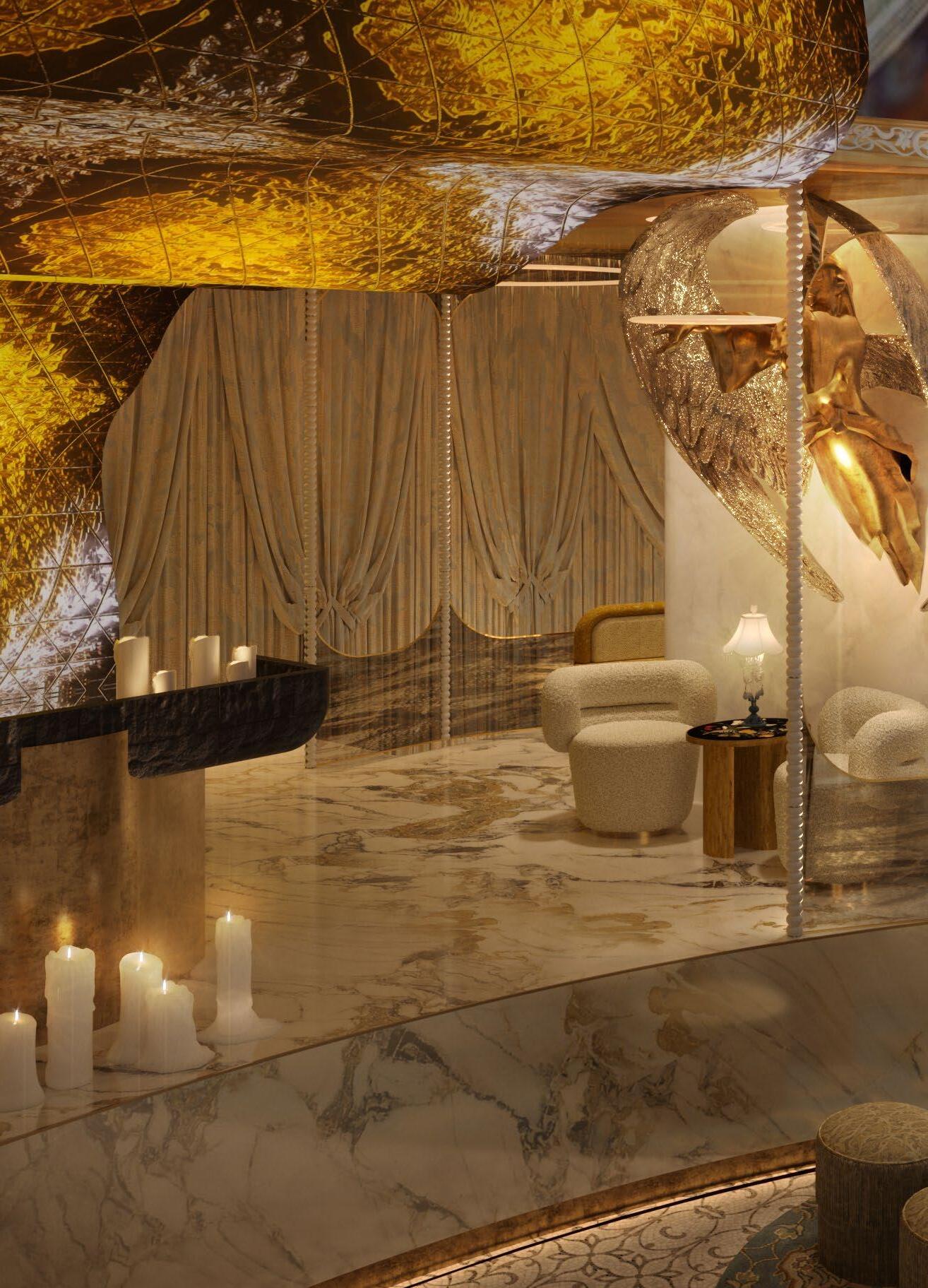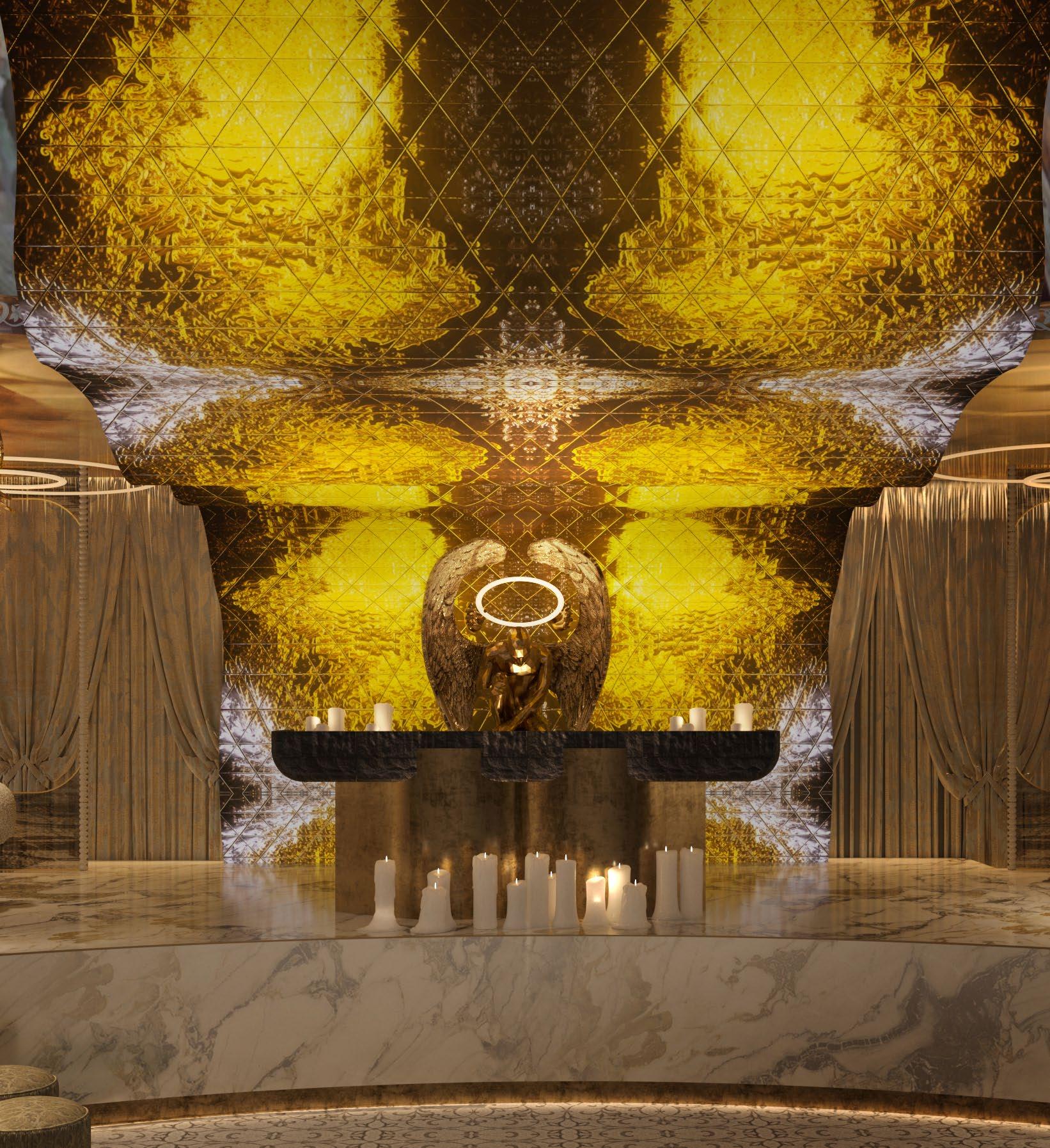 Interiors t hat h as taken inspir ation from renaissance, gothic & Biblical elements, Art Nouveau and floral details.