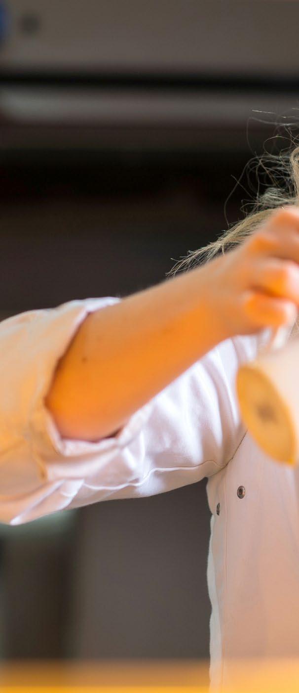 “I am inspired by many chefs and many different things, but one of the aspects of the job that I find most stimulating is the adrenaline rush of the dinner service. Nothing beats the exhilarating, highpressure thrill of a busy kitchen and I love being in that moment. Having a full house, going beyond our guests’ expectations, and seeing a smile on every diner’s face is what keeps us going.”