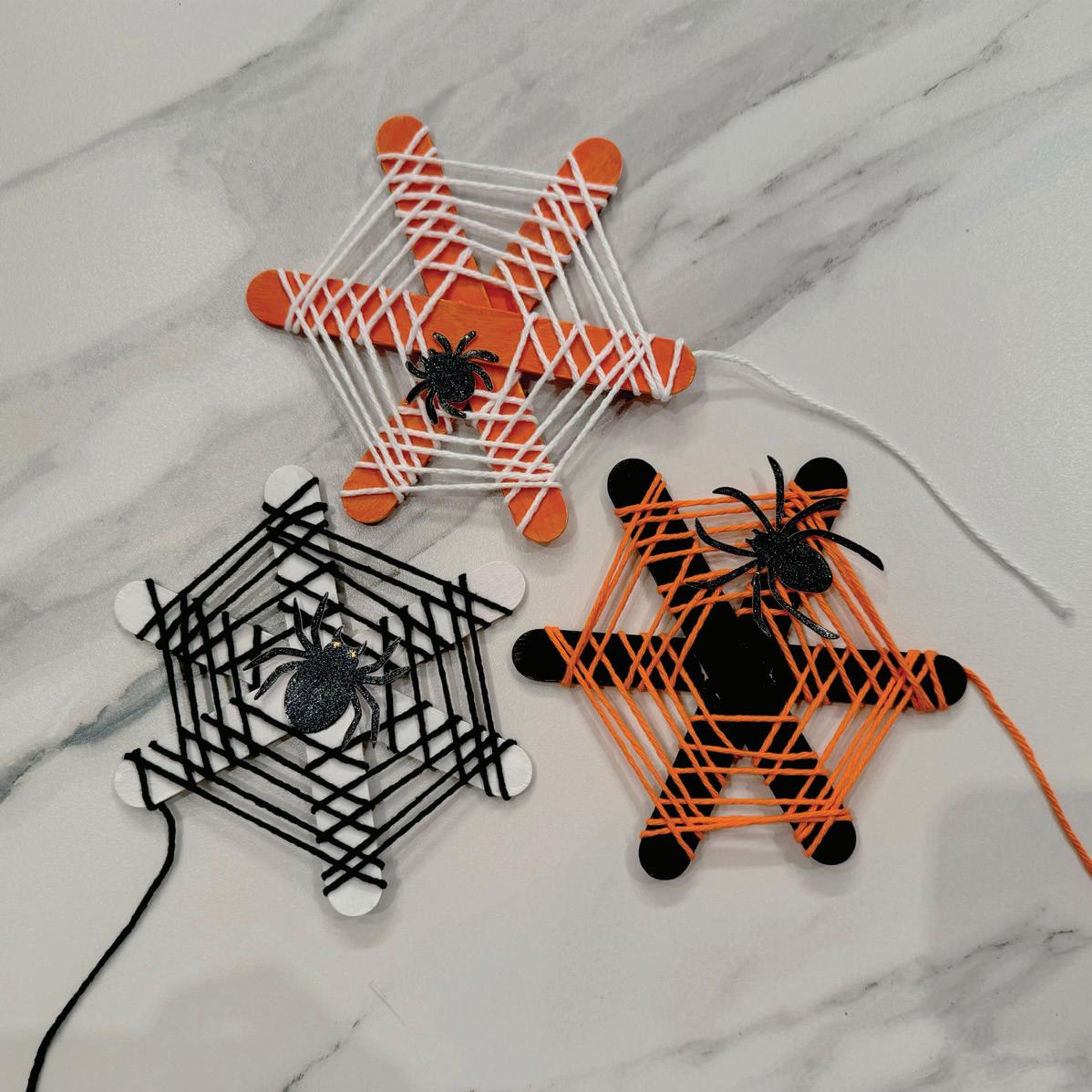 Tempera paint Scissors Yarn in white, black, or orange Plastic spiders or stickers (optional)