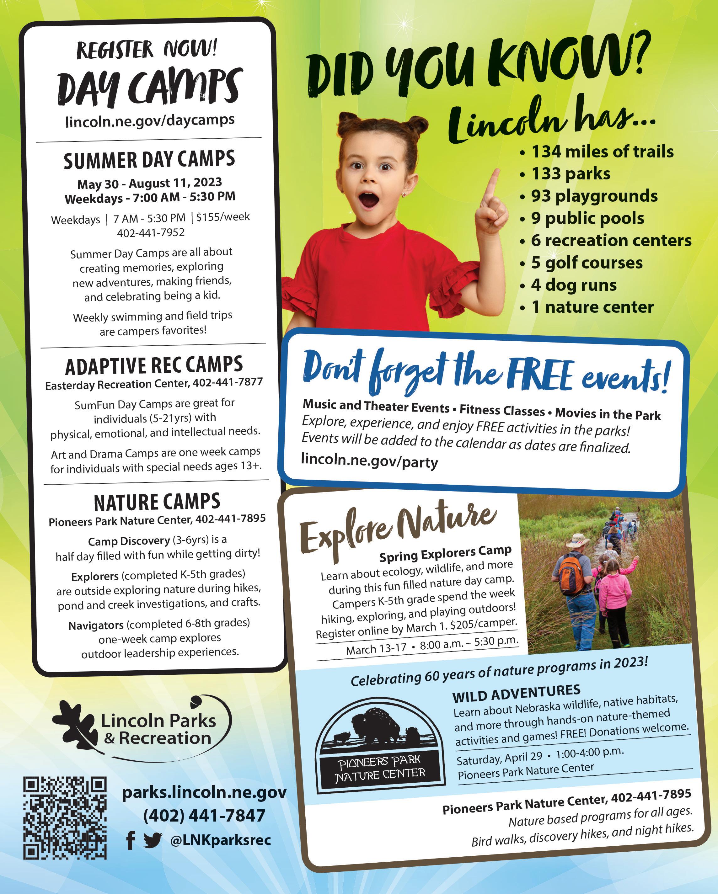This spring edition is FULL of fun things to do with your kiddos. And, it’s also full of exciting camps and activities to send them to! Lincoln is so lucky to have camps galore and no matter what your child is interested in, you should be able to find the right place for them to thrive.