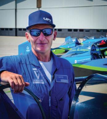 bursts out of a turbine. The smell of gas and freedom fills the While some may fear this intense setting, David Myers feels at home on the runway and in the