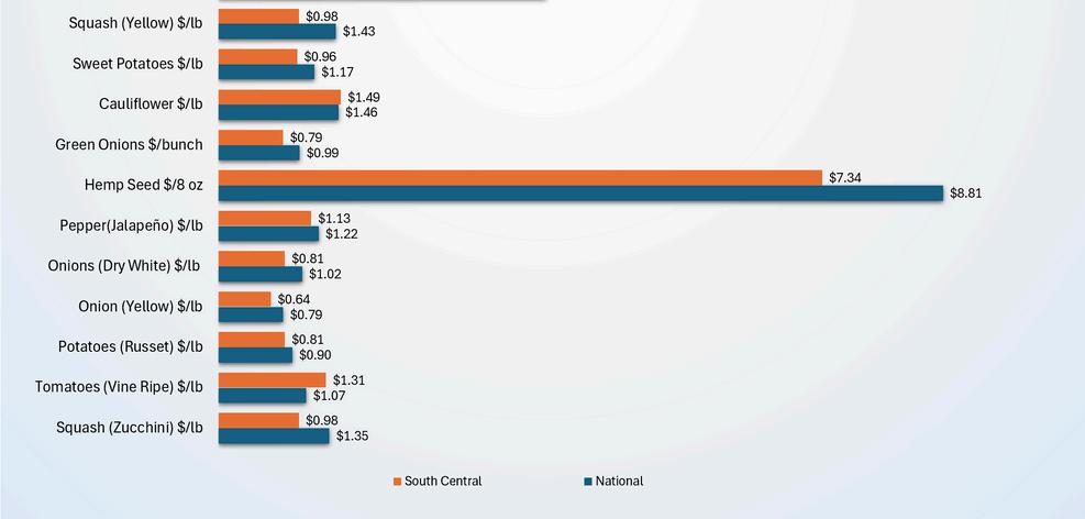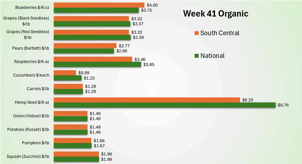 Figure 2. Market prices of organic products in the US and the South-Central region. Comparative sample.