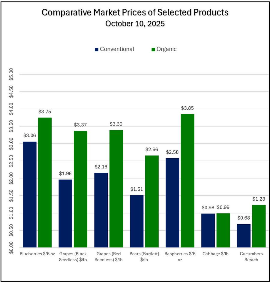 Figure 3. Comparing prices of selected crops from conventional and organic crop markets.