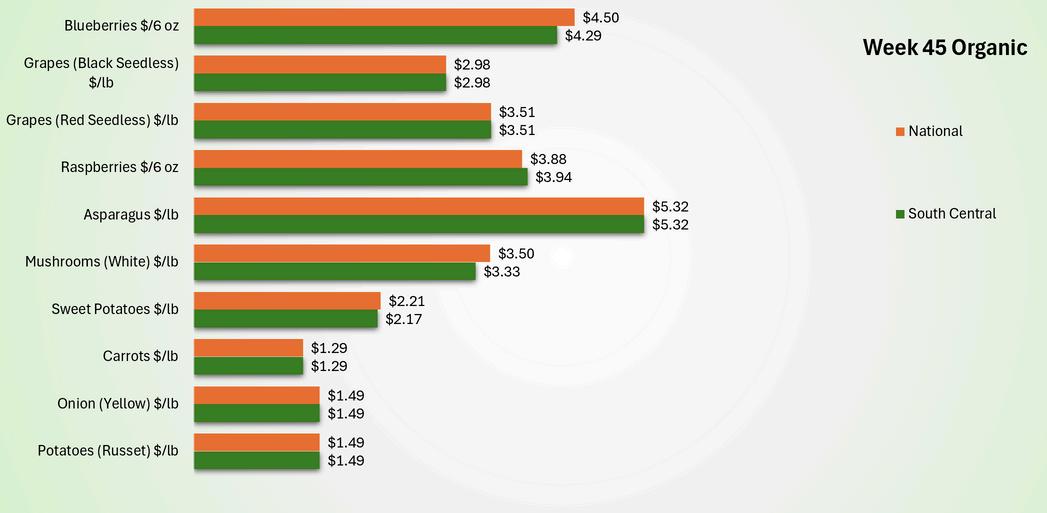 Figure 2. Market prices of organic products in the US and the South-Central region. Comparative sample.