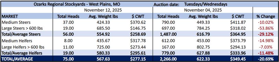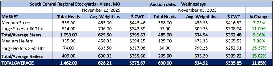 Market prices for livestock in Missouri are reported from the National Beef Wire database and USDA sources Beef prices at live auctions report medium and large weight Classes Steers and heifers with 599 pounds or less are mediumweight classes, and steers and heifers with 600 pounds or more are largeweight classes.