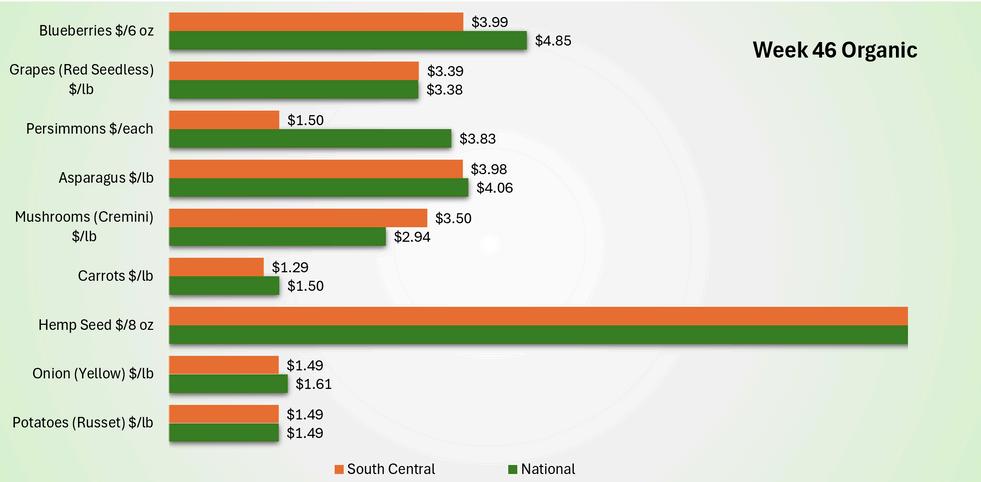 Figure 2. Market prices of organic products in the US and the South-Central region. Comparative sample.