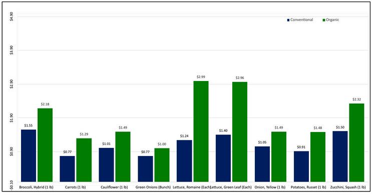 Figure 3. Comparative Market Prices of Selected Conventional and Organic Products