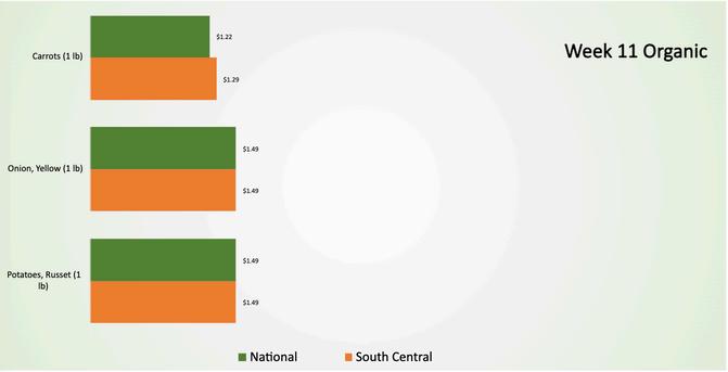Figure 2. Market prices of organic products in the US and the SouthCentral region. Comparative sample.