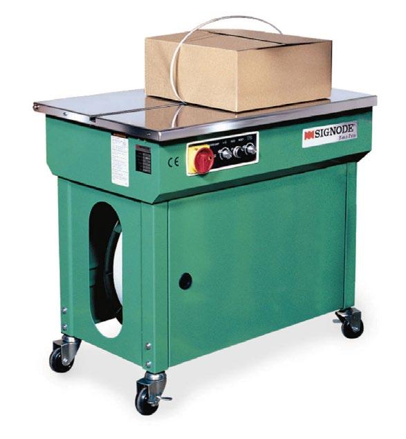 Trackless Strapping Machine is completely portable and very compact, this tabletop style strapping machine requires only six feet of floor space yet can strap virtually any shape or size of product bundle or package that can be placed on the machine. The P100 will automatically tension, heat seal, cut the strap, and immediately pre-feed for the next application.