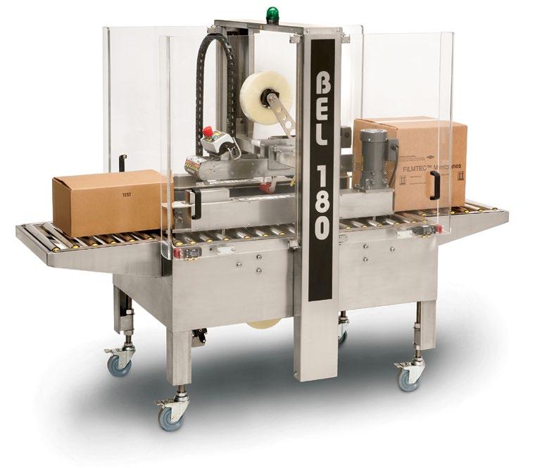 Random, and uniform case sealer. It is able to adjust to the width and height of the inserted case and features locking movements for safety in case of sudden air loss. The BEL 180’s ability to lock into position with the push of a button for uniform sealing also makes this machine very convenient and adaptable to fluctuations in product demand.