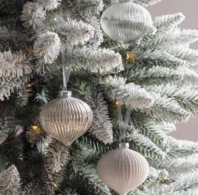 Frosted glass ornaments and minty colours play perfectly with the winter theme. They look great with traditional pine greens or decorating a frosted or flocked Christmas tree.