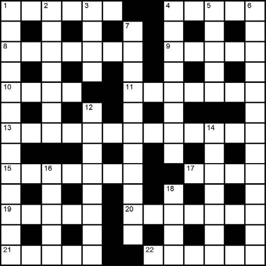 Across: 1 Absurd, 4 Rioja, 8 Vanilla, 9 Sonic, 10 Roam, 11 Israeli, 13 Impracticable, 15 Emperor, 17 Writ, 19 Extra, 20 Ant bear, 21 Total, 22 Shekel.