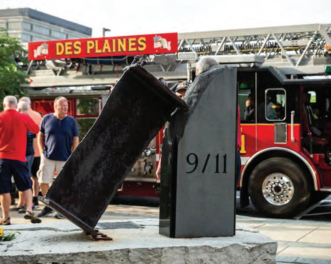 Each year on Sept. 11, the City reflects on the 2001 terrorist attacks. Elected officials, first responders, and community members gathered at City Hall to pay tribute to the victims and heroes of that tragic day. The Des Plaines Civic Center complex is home to a permanent 9/11 memorial, featuring a piece of steel that was among the supports of the Twin Towers of the World Trade Center.