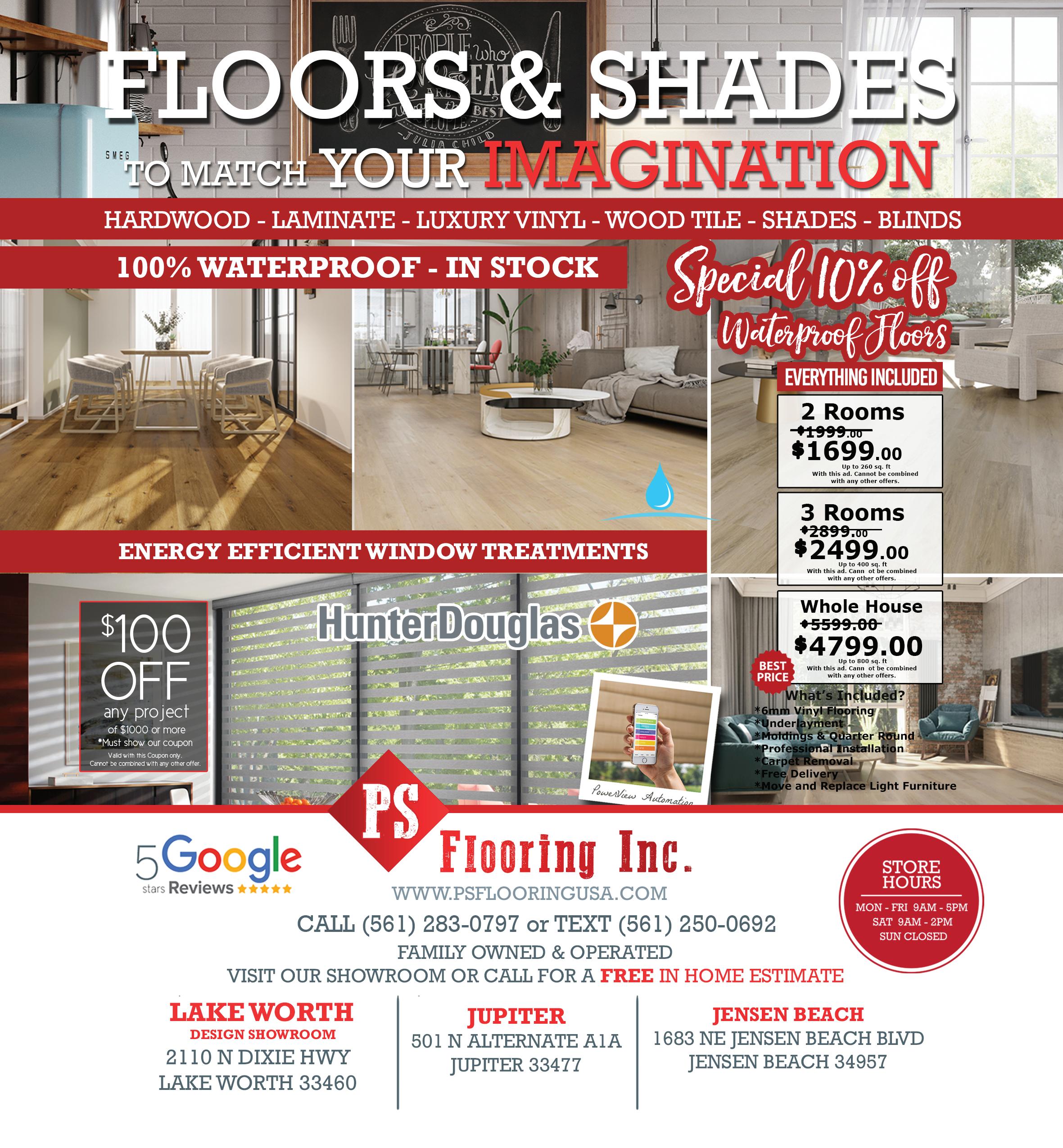 REWARDS MAGAZINE • TO ADVERTISE CALL 561.866.8298 6 WOOD | LAMINATE | LUXURY VINYL | CARPET | BASEBOARDS SALES & INSTALLATION 561-665-0913 southflcarpetandflooring.com 980 N. DIXIE HWY, BOCA RATON, FL 33432 FAMILY OWNED & OPERATED LICENSED & INSURED GRAND OPENING SPECIAL 2 ROOMS $1,599 100% WATERPROOF LUXURY VINYL FLOORING CALL FOR AN IN-HOME ESTIMATE! SERVING PALM BEACH COUNTY SINCE 2010 FOLLOW US SHOWROOM HOURS: MON-FRI 8AM-5PM | SAT BY APPT VISIT OUR SHOWROOM UP TO 250 SQ. FT. OVER 100 VERIFIED 5 STAR REVIEWS