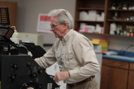 He is one of the last of his kind in the field of offset print production and still runs the print shop for LISD on the original offset equipment that he has maintained for 51 years