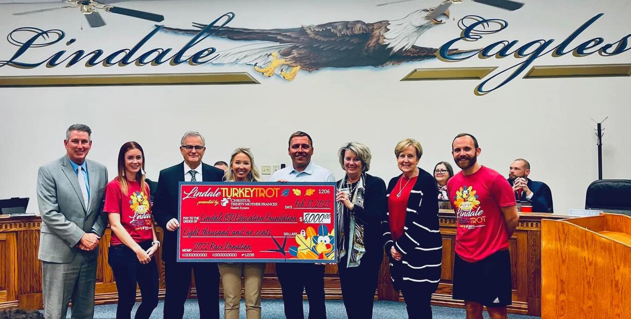 Christus Trinity Mother Frances Health Systems presented the Lindale ISD Education Foundation with a $8,000 check. The funds were raised from the third annual Lindale Turkey Trot.