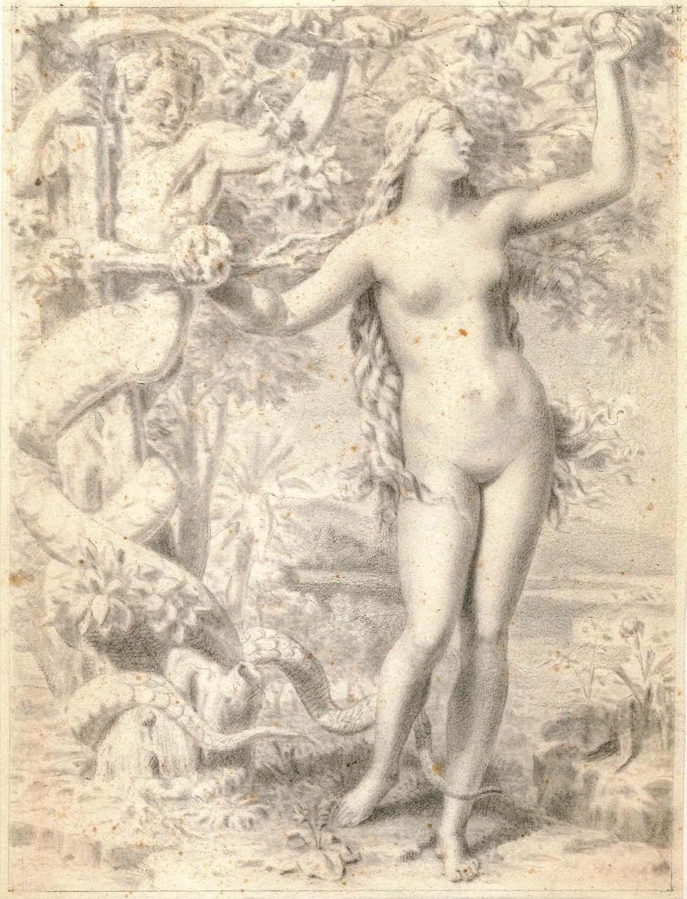 Eve Picks Fruit, pencil on paper, circa 1800, Unknown artist Collection of the Yuko Nii Foundation
