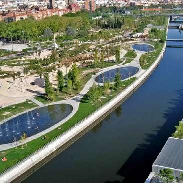 INSTALACIONES DEPORTIVAS, CENTROS DE INTERPRETACIÓN Y CREACIÓN ARTÍSTICA, PLATAFORMAS CULTURALES, UNA PLAYA URBANA, 13 FUENTES ORAMENTALES,17 ÁREAS DE JUEGOS INFANTILES, KIOSKOS, CAFÉS, MÁS DE 33.500 ÁRBOLES PLANTADOS… MADRID VUELVE A PERTENECER AL RÍO Y SU USO VUELVE A SER SOCIAL.