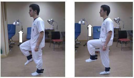 5. En bipedestación, marcha en el mismo lugar flexionando rodillas. 10 repeticiones.