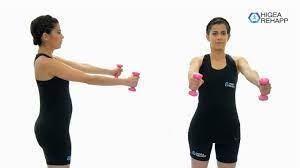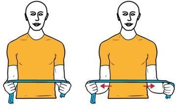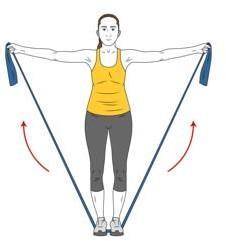 3. Con banda elástica, sujetarla con ambas manos y llevando los hombros abducción y aducción. 10 repeticiones.