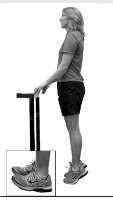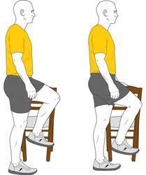 6. en bipedestación, utilizando un respaldo de una silla, ponemos todo el peso en el talón del pie, quedando los dedos del pie en elevación 3 repeticiones de 10