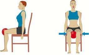 4. en sedestación se coloca la pelota en medio de las rodillas realizando una compresión en la pelota, realizaremos 3 series con 10 repeticiones para fortalecer rodillas
