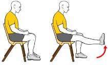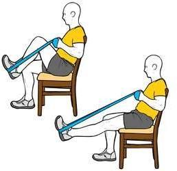 1. en sedestación con los pies en extensión realizamos levantamientos de piernas con la banda elástica, 3 series de 10 repeticiones (a tolerancia del paciente)