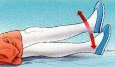 2. en sedestación con los pies en extensión movemos los pies hacia arriba y hacia abajo, realzando flexión dorsal y plantar con la banda elástica 10 repeticiones en cada pie