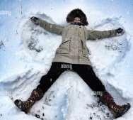 8. Ahora nos colocamos los globos en las muñecas de y dejamos a un lado el palo, y con los brazos vamos a llevarlos arriba como si estuviéramos haciendo un ángel de nieve.