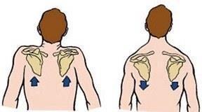 1. Flexionar hombros, entrelazando los dedos, y luego llevar los hombros hacia elevación, estirando lo más posible la espalda. 10 repeticiones.